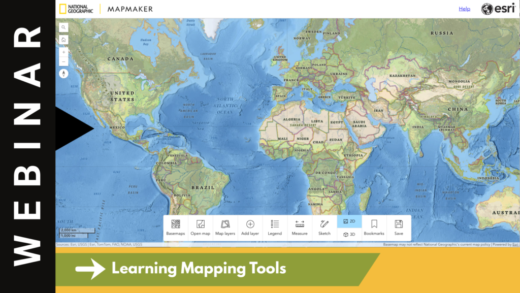 Join us for this two-part webinar (February 18th & 25th) that will highlight the steps needed to get started using MapMaker in your classroom and for your students. You will be able to follow along with the webinars to create an activity you can use in your classroom. Both parts of the webinar will be recorded for you to review. You do not need a log in to use MapMaker. The pace will allow you to ask questions along the way as you create along with us.
